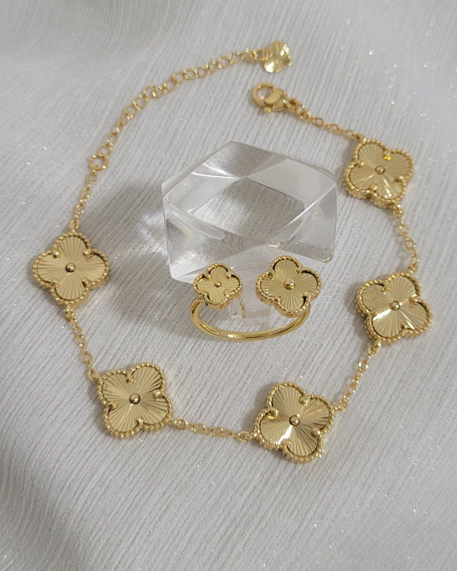 ست دستبند، انگشتر طرح طلای زنانه، دخترانه، مدل ونکلیف، جنس استیل،در دو مدل، کد1224💍