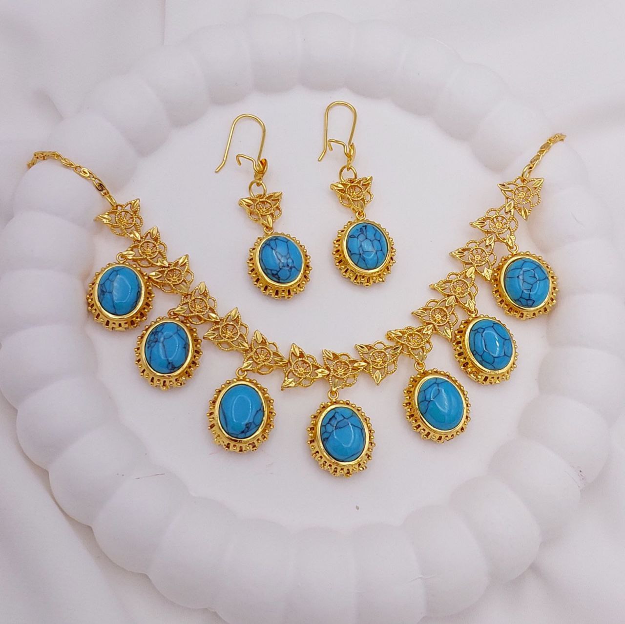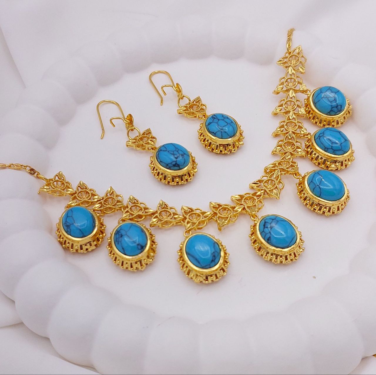 #نیمست طرح طلا فیروزه جدید😍 ♦️رنگ ثابت ♦️بدون حساسیت ♦️آبکاری فوقلعادهقوی ♦️مارک My dear ♦️سنگ طبیعی فیروزه ♦️کاری شیکو متفاوت