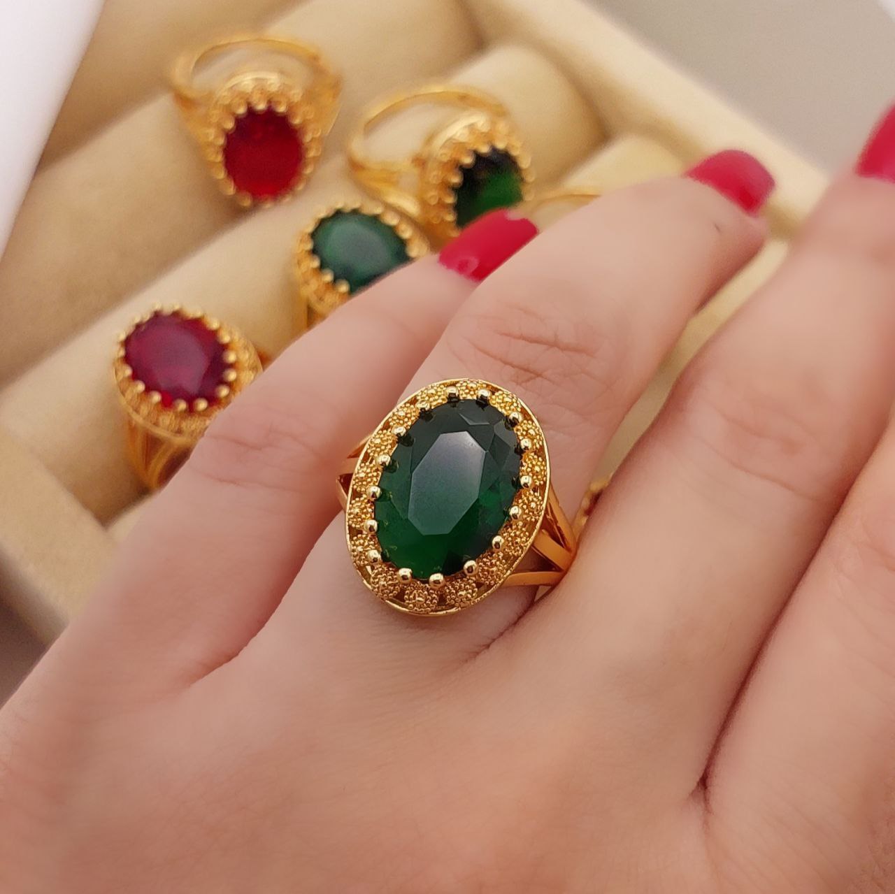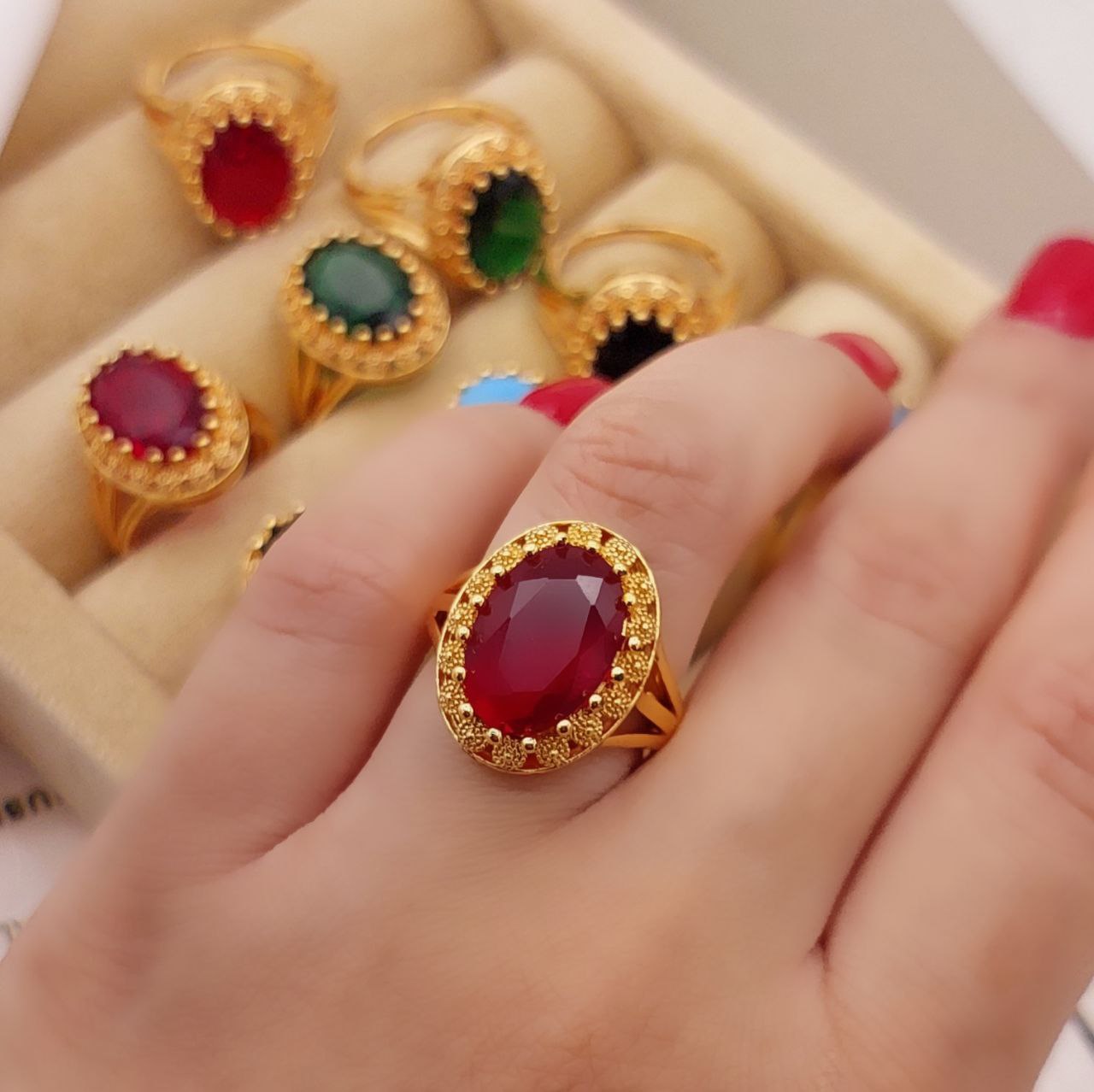انگشتر طرح سنگ زنانه، جنس برنجی، در4رنگ شیک، کد1247💍