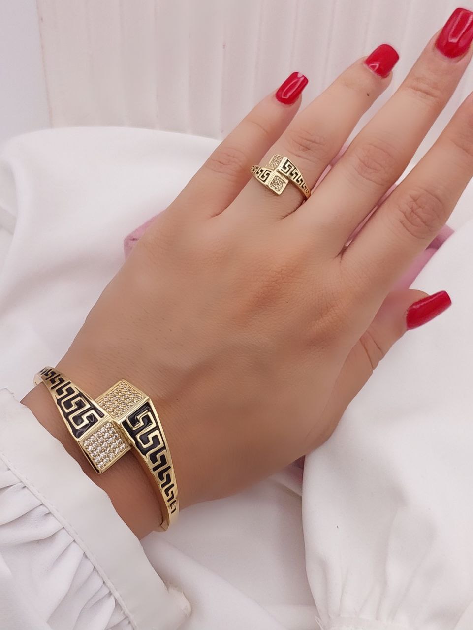 #ست دستبند انگشتر ورساچه جدید😍😍 ♦️رنگ ثابت ♦️بدون حساسیت ♦️آبکاری طلا ♦️کاملا کپی شده از طلا ♦️سایز انگشتر قابل تنظیم ♦️سایز دستبند مناسب ۲تا۴