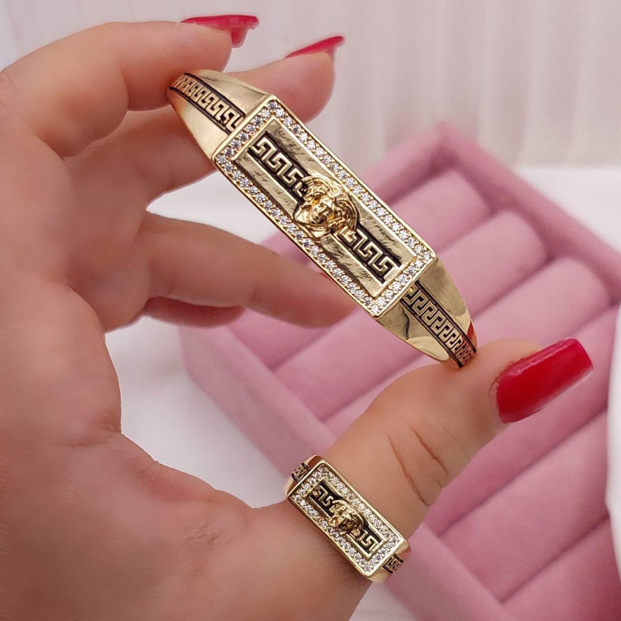 #ست دستبند انگشتر ورساچه جدید😍😍 ♦️رنگ ثابت ♦️بدون حساسیت ♦️آبکاری طلا ♦️کاملا کپی شده از طلا ♦️سایز انگشتر قابل تنظیم ♦️سایز دستبند مناسب ۲تا۴