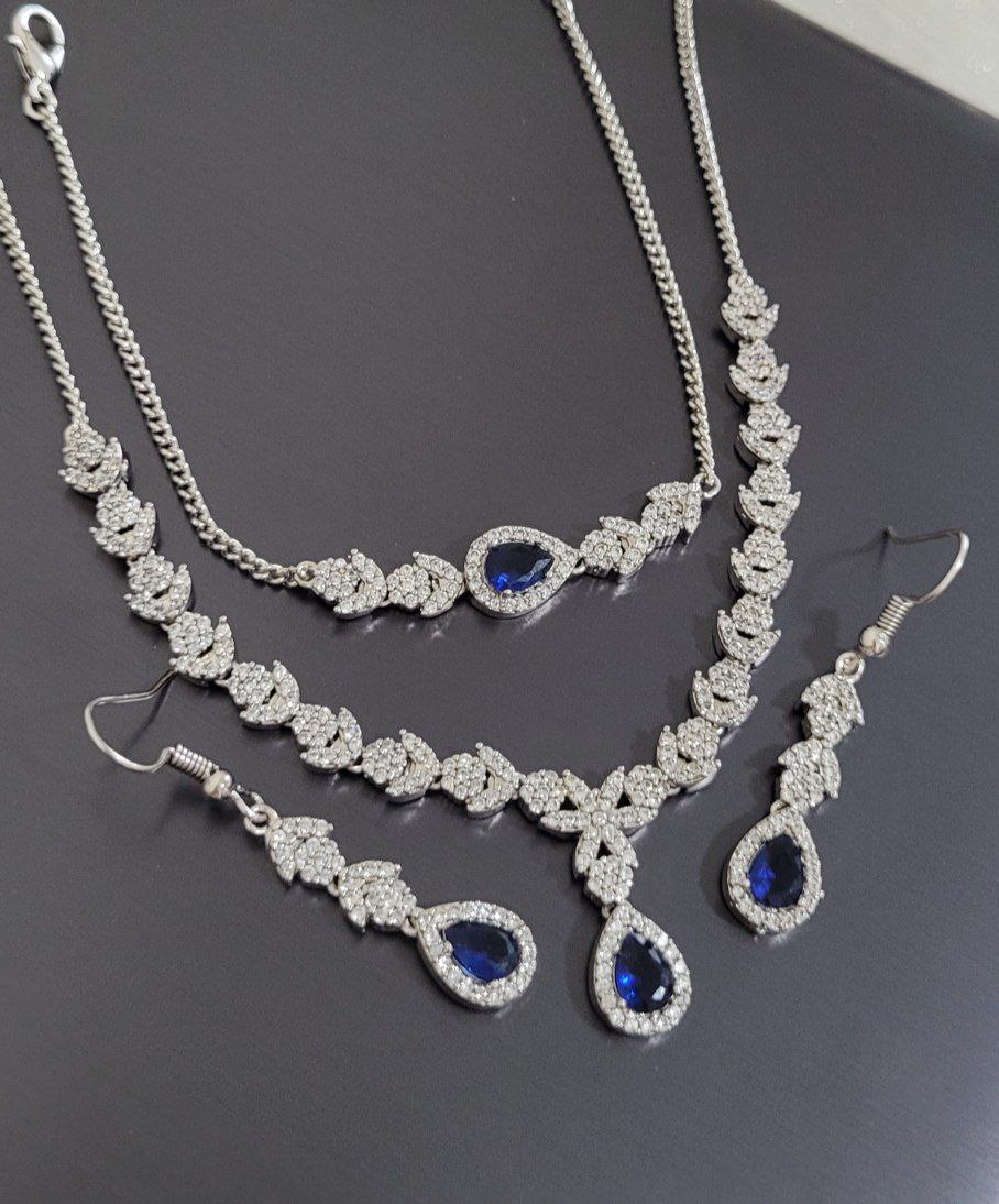 سرویس جواهری زنانه، نگین مخراجکاری، رنگ ثابت، در دو رنگ نگین، کد1292💍