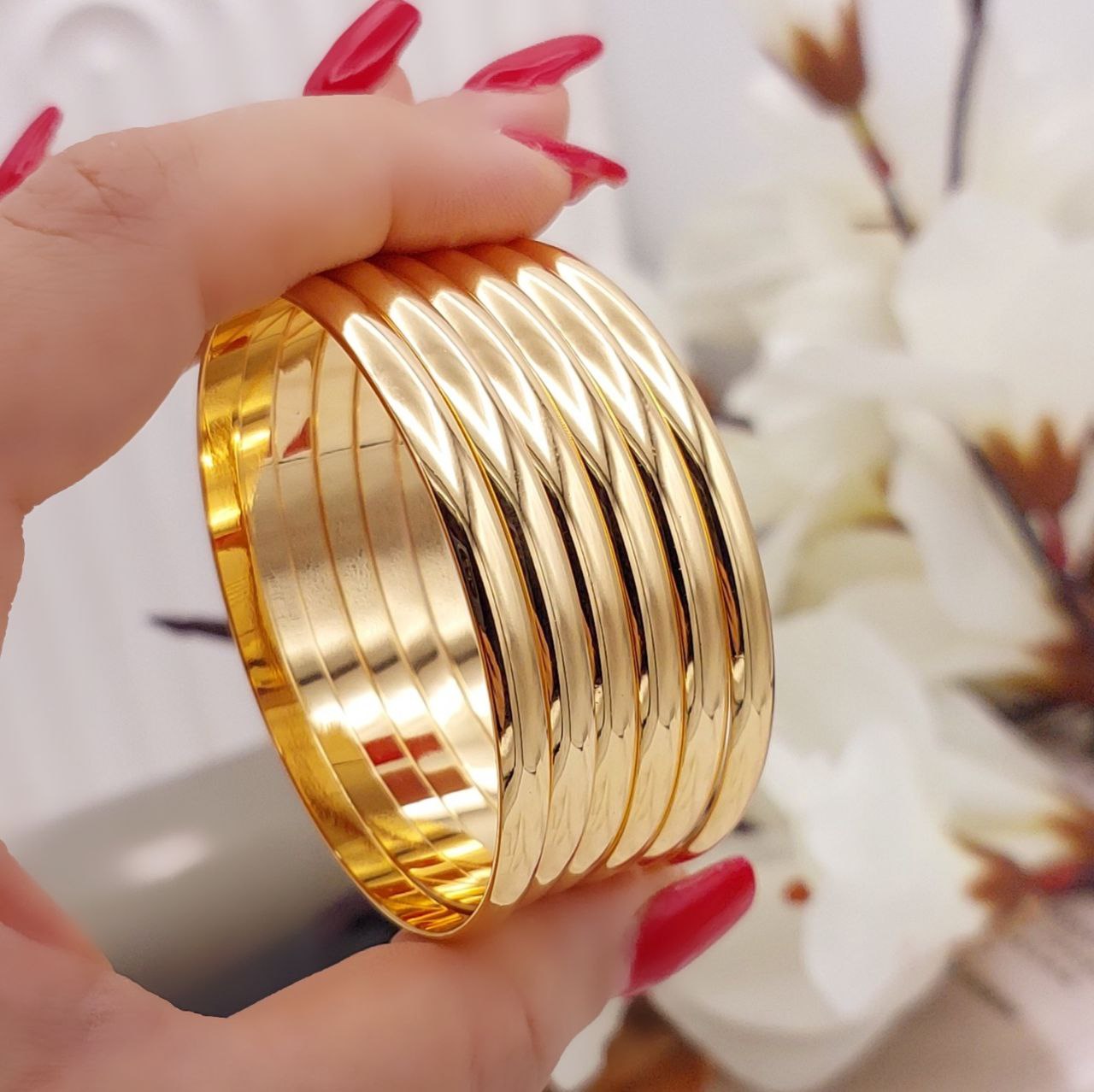 #النگو 4میل آینهای دامله جدید 😍 ♦️رنگثابت ♦️بدون حساسیت،😍 ♦️کپی شدهاز ویترینطلافروشیا🤗 ♦️برندysxدامله ♦️سایز. 1,2,3,4,5 ♦️بدون خط و خش و لک کاملا تمیز
