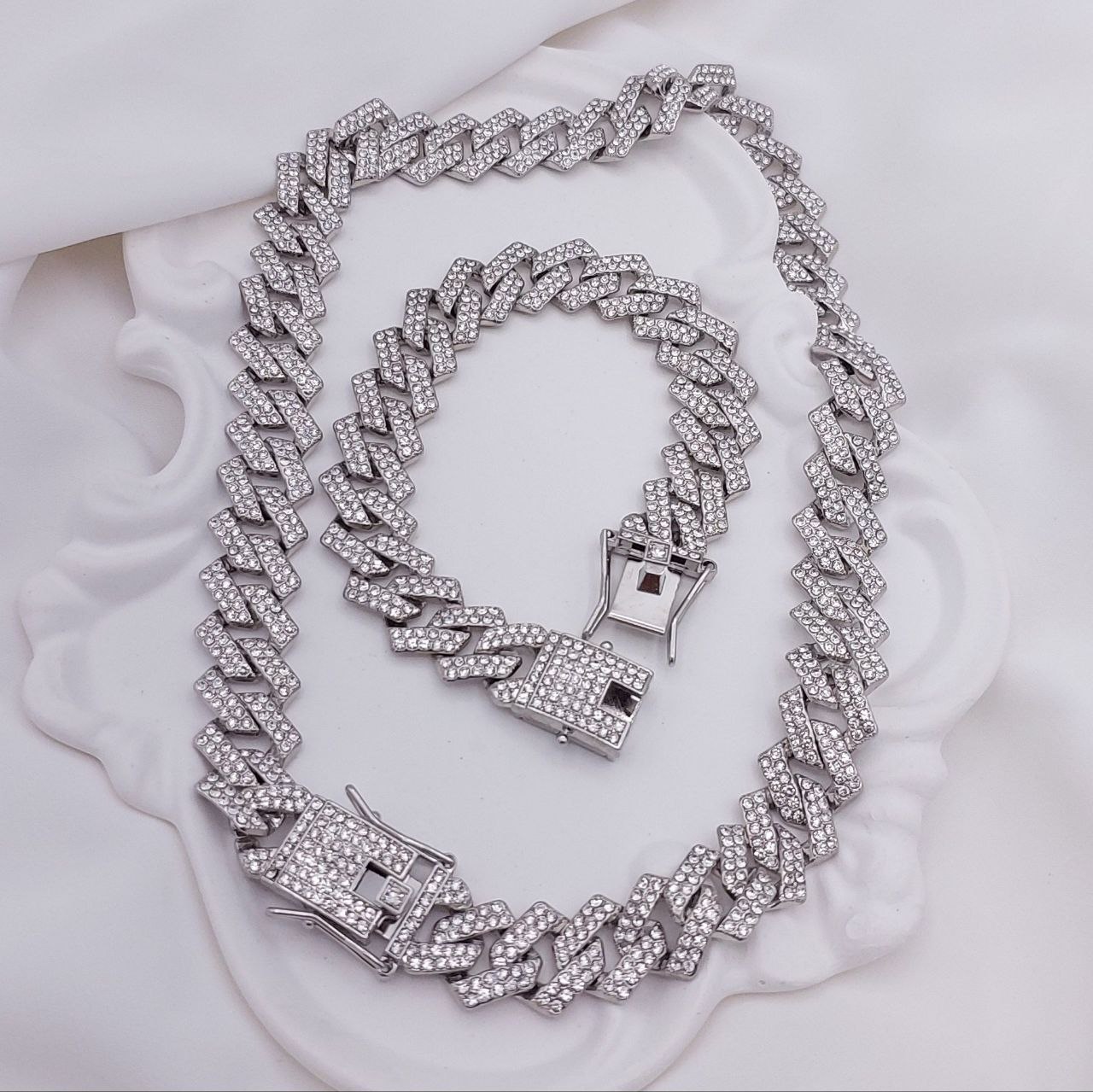 #ست فول نگین قفل کوبایی‌‌ زنانه😍 ♦️عرض‌1/5سانت 👌👌 ♦️رنگ ثابت ♦️بدون حساسیت👌 ♦️فول نگین اتریشی درخشان ♦️مخراج‌کاری شده ♦️برند معتبر و معروف maydear ♦️قفل کوبایی ♦️فروش به صورت ست دستبند‌ و گردنبند ♦️کد1455💍