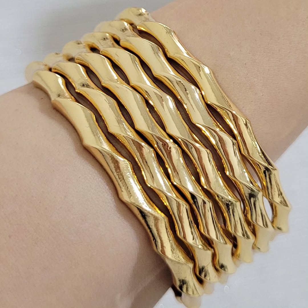 این النگو زنانه با فرم استخوانی و طراحی یکدست، جلوهای خاص و مرتب روی دست ایجاد میکند.