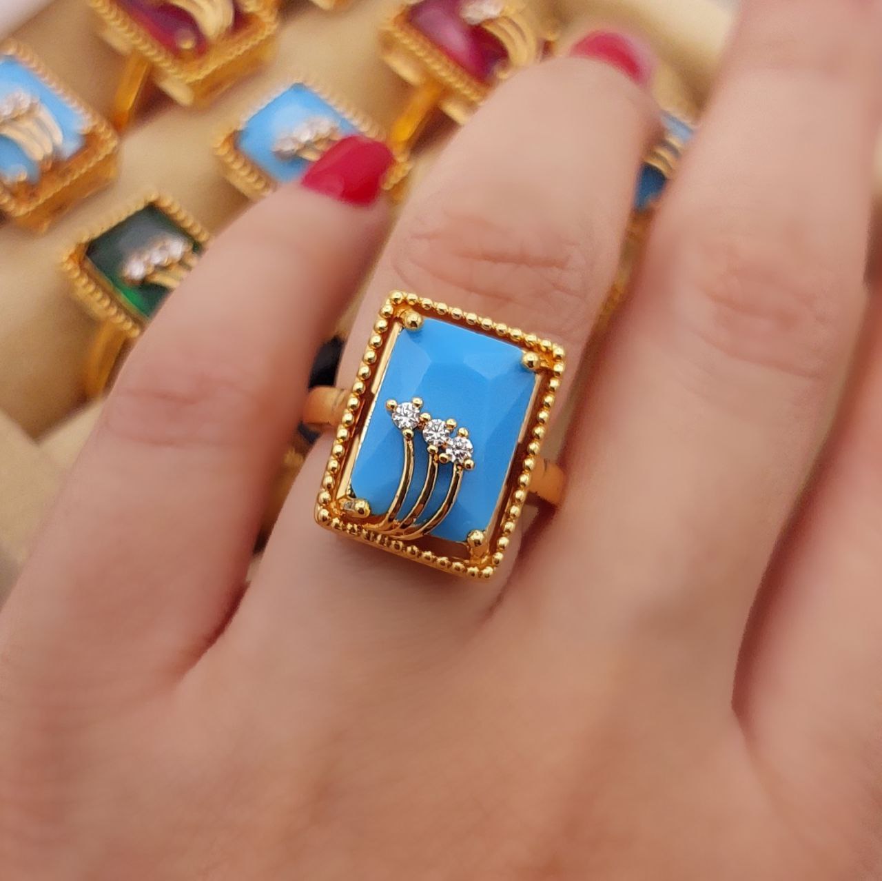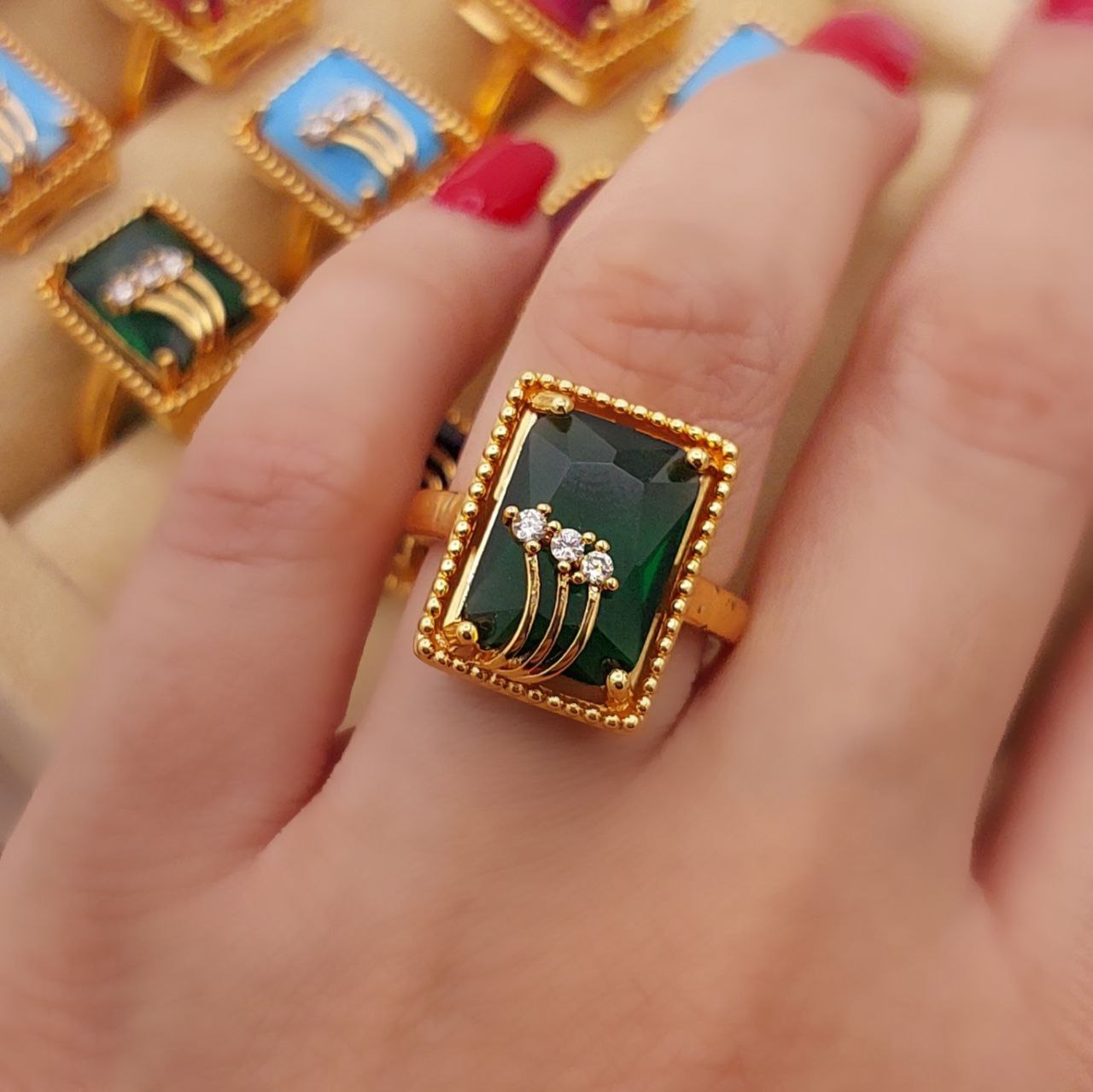 #انگشتر نگین دار جدید زنانه♦️رنگ ثابت بدون حساسیت ♦️آبکاری فوقلعاده قوی طلا ♦️در ۴رنگ سبز و قرمز ومشکی و فیروزه ♦️سایز انگشتر فری به هر سایز دل‌خواهی که مشتری بخواد تغییر می‌کند ♦️در4رنگ، کد1492💍
