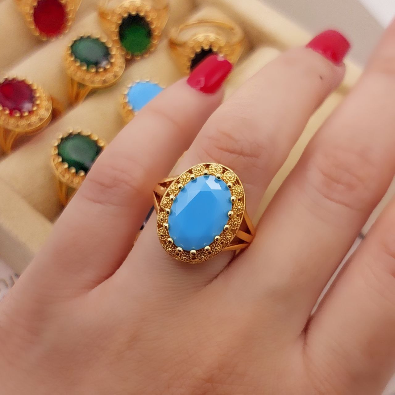 #انگشتر نگین دار جدید زنانه♦️رنگ ثابت بدون حساسیت ♦️آبکاری فوقلعاده قوی طلا ♦️در ۴رنگ سبز و قرمز ومشکی و فیروزه ♦️سایز انگشتر فری به هر سایز دل‌خواهی که مشتری بخواد تغییر می‌کند ♦️در چهار رنگ، کد1493💍