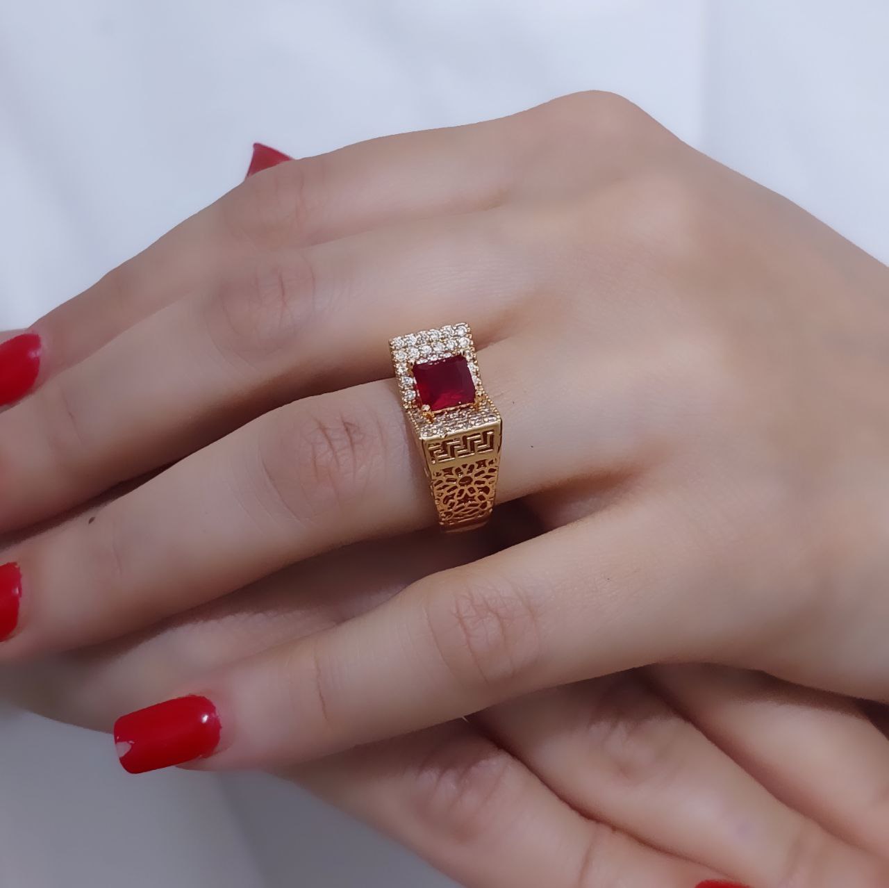انگشتر زنانه نگین دار شیک | رنگ ثابت و آبکاری فوق‌قوی طلا