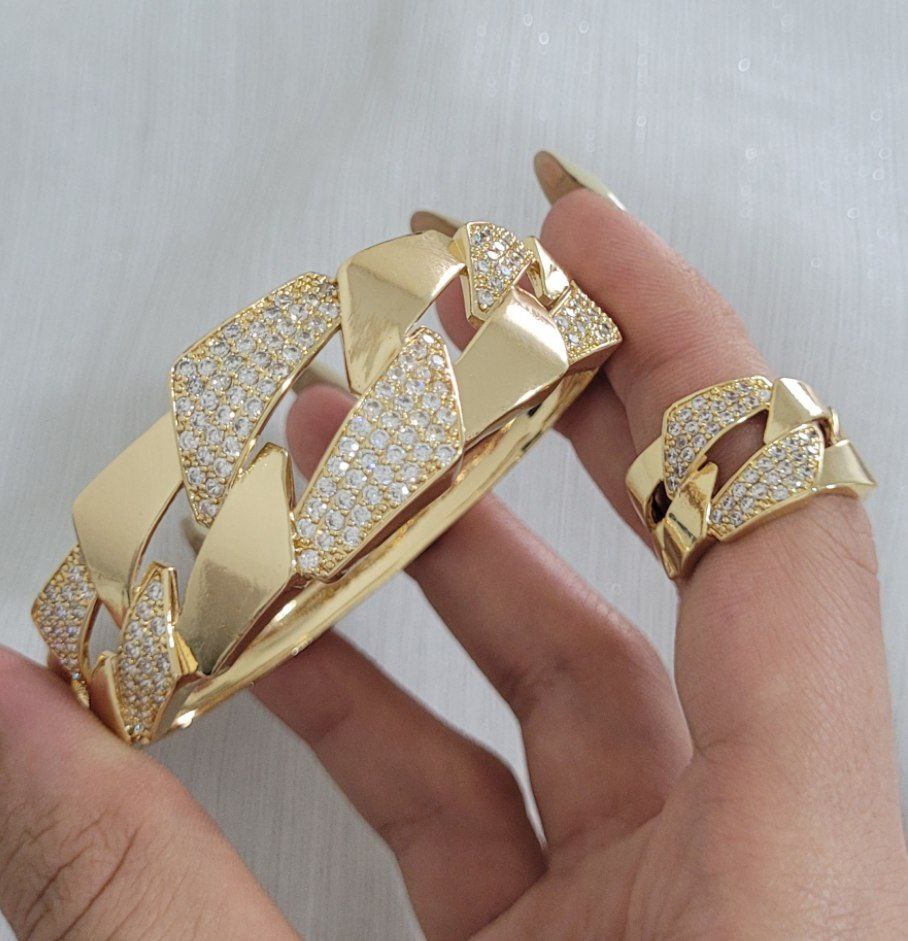 ست دستبند، انگشتر طرح طلای زنانه، مدل کارتیه نگین دار، جنسysx، رنگ ثابت،مناسب استفاده دائم و روز مره، ضد حساسیت، مجلسی و شیک، نگین ثابت، کد1574💍