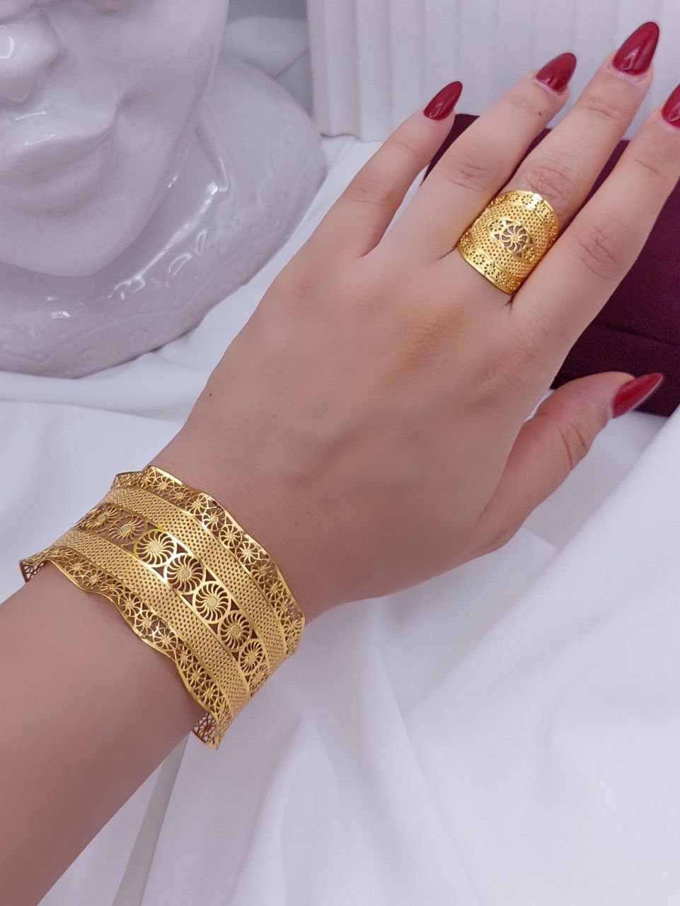 #ست دستبند انگشتر بحرینی ♦️رنگ ثابت ♦️بدون حساسیت ♦️آبکاری طلا ♦️فوقلعاده شیکومجلسی ♦️دستبند و انگشتر فری سایز مناسب کلیه سایزهای دست ✅️شارژ مجدد✅️
