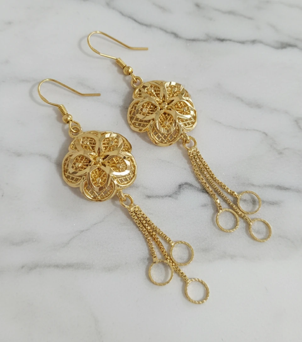گوشواره آویز طرح گل چرخشی طلا روس – رنگ ثابت و ضد حساسیت