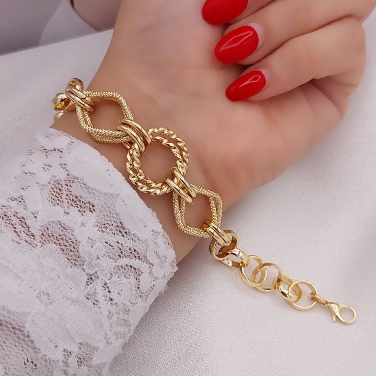 دستبند حلقه‌ای زنانه طرح طلا برند شین (SHEIN) مدل زنجیری با بافت‌های متنوع و درخشش خیره‌کننده