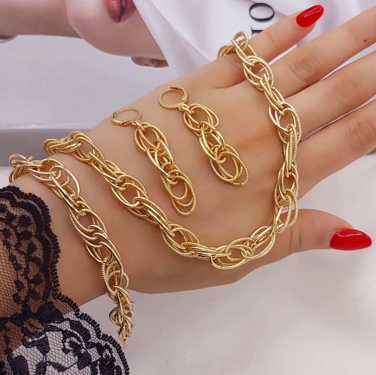 سرویس زنانه طرح طلا مدل حلقهای برند شین با طراحی مدرن و چشمگیر، یکی از مدلهای محبوب بدلیجات محسوب میشود که در سه طرح متفاوت و خاص عرضه شده است. در طراحی این سرویس از ترکیب حلقههای بیضی، حلقههای بافتدار و اتصالهای ظریف استفاده شده که جلوهای شیک و درخشان ایجاد میکند. این سرویس شامل گردنبند، دستبند و گوشواره ست بوده و به دلیل آبکاری طلایی براق، ظاهری بسیار نزدیک به زیورآلات طلا دارد و برای استفاده روزمره یا استایلهای مجلسی انتخابی جذاب محسوب میشود.