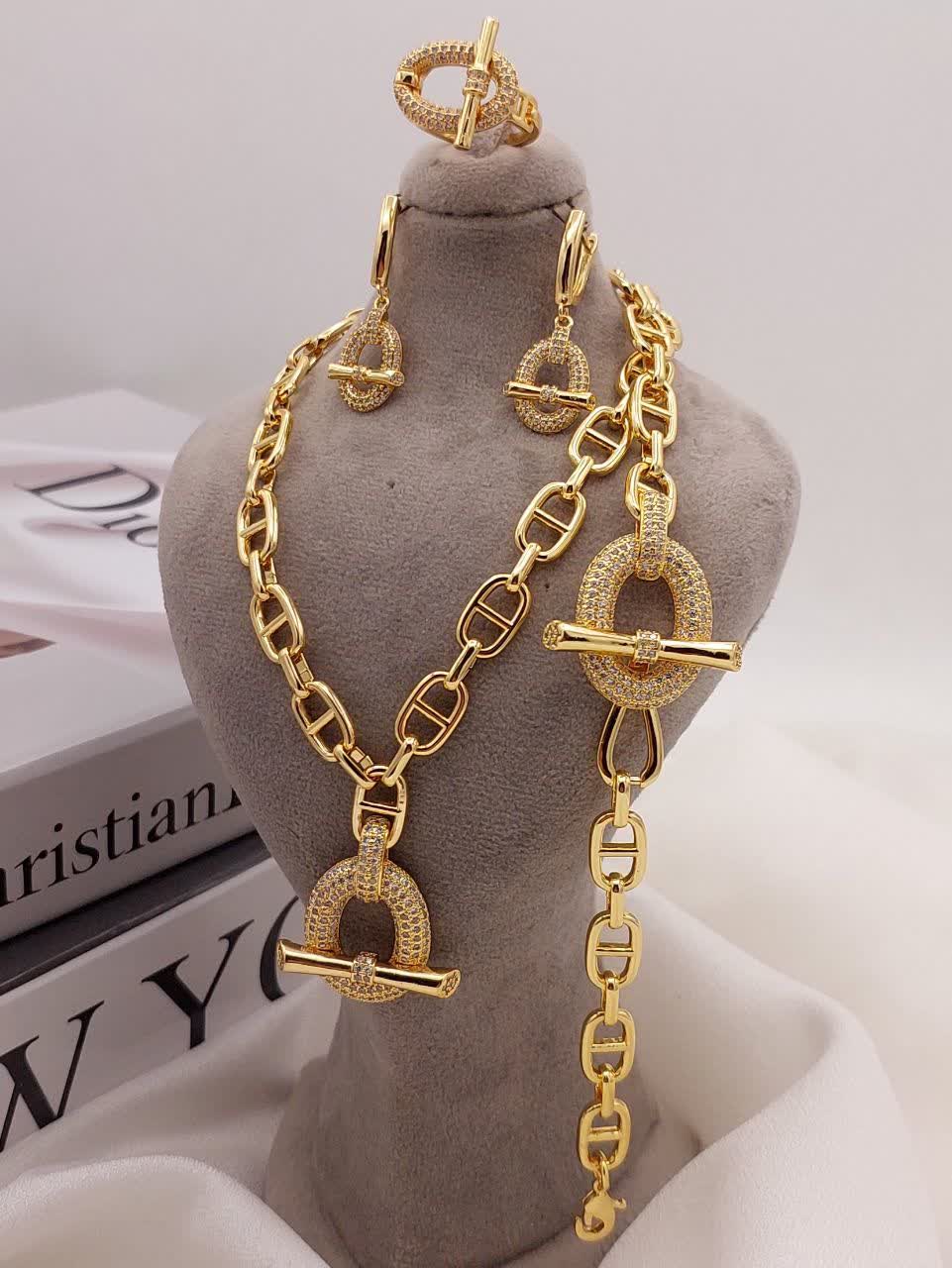 این سرویس ترکیبی از طراحی امروزی و ظرافت زنانه است. فرم بیضی نگینکاریشده در کنار جزئیات دقیق زنجیر، ظاهر سرویس را جذاب و کاملاً چشمگیر کرده و برای افرادی مناسب است که به زیورآلات متفاوت علاقه دارند.