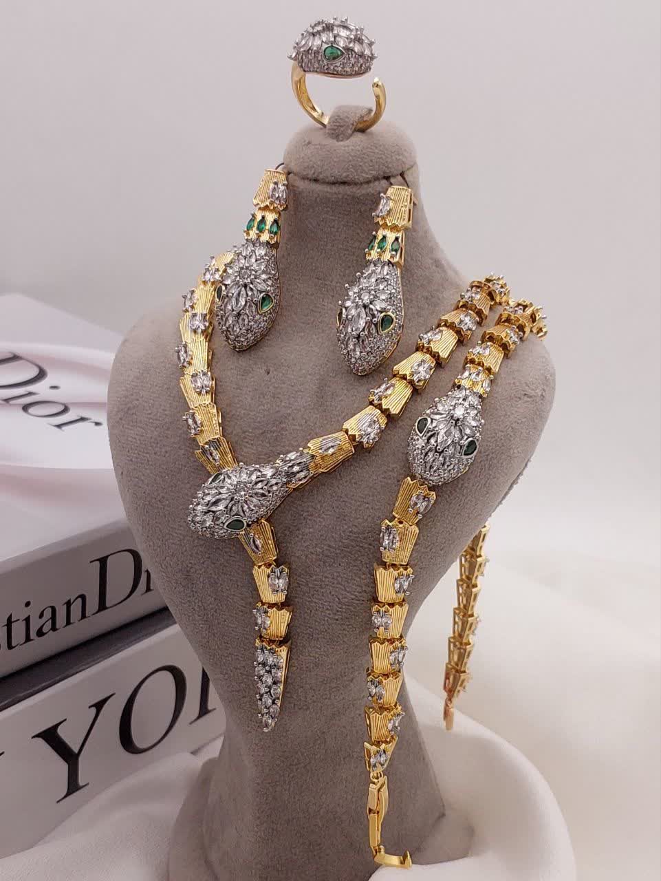 سرویس جواهری برند پرنس با طراحی دو رنگ و نگینهای اتریشی درخشان، جلوهای لوکس و چشمگیر ایجاد میکند. ترکیب آبکاری مقاوم و فرمهای حجمی باعث شده برای مجالس و مهمانیها انتخابی حرفهای باشد. وزن متعادل و خاصیت ضدحساسیت، استفاده طولانیمدت را راحت و بدون نگرانی میکند.