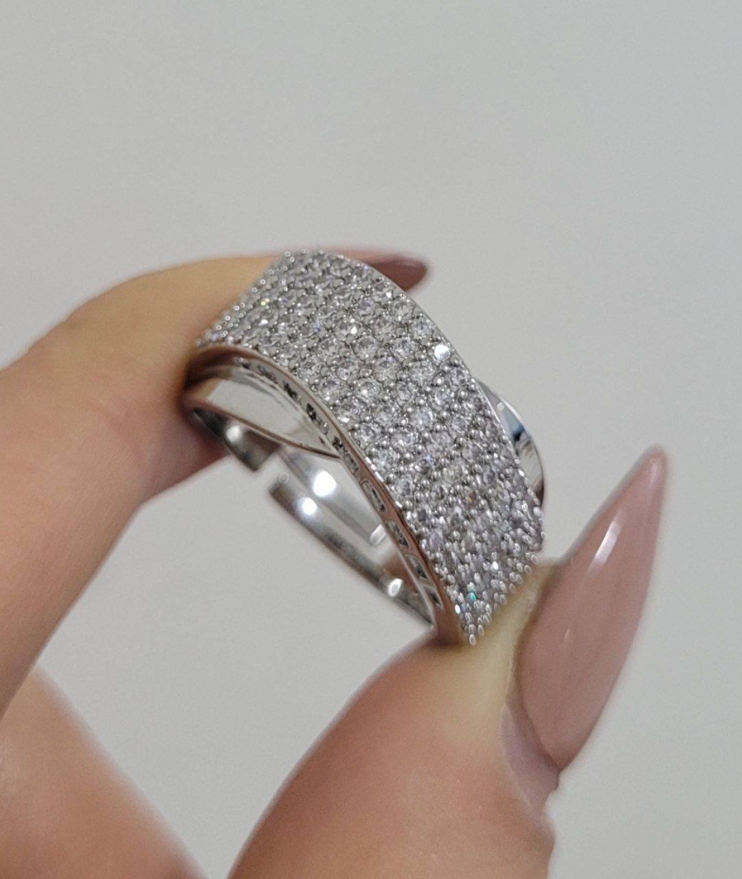 انگشتر ادامسی برند CM فری سایز با طراحی پهن و سطح کاملاً نگینکاریشده