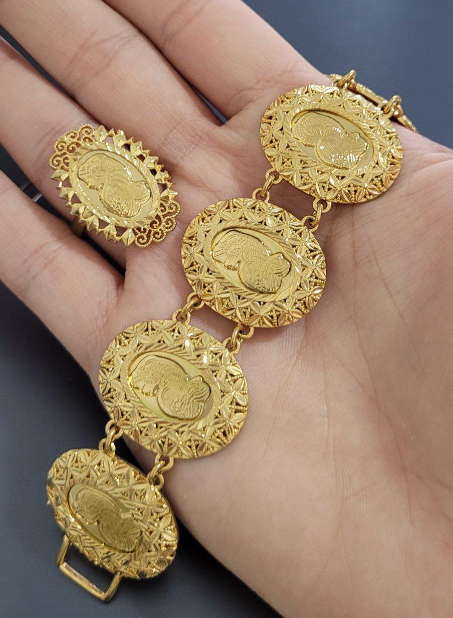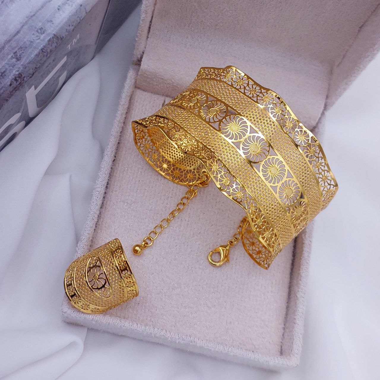 #ست دستبند انگشتر بحرینی زنانه♦️رنگ ثابت ♦️بدون حساسیت ♦️آبکاری طلا ♦️فوقلعاده شیکومجلسی ♦️دستبند و انگشتر فری سایز مناسب کلیه سایزهای دست ♦️کد1605💍